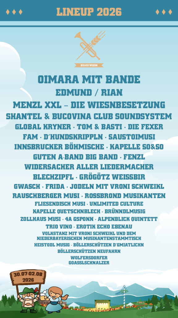 Brass Wiesn Festival 2026 30. Juli bis 2. August 2026 | Eching bei München Große Vorfreude auf den 30. Juli 2026. Dann heißt es wieder: “O’zapft is – aber bitte mit Brass!” Bis 2. August verwandelt sich das Festivalgelände in Eching bei München erneut in ein Paradies für alle Fans von Blasmusik, Brass und bayerischer […]